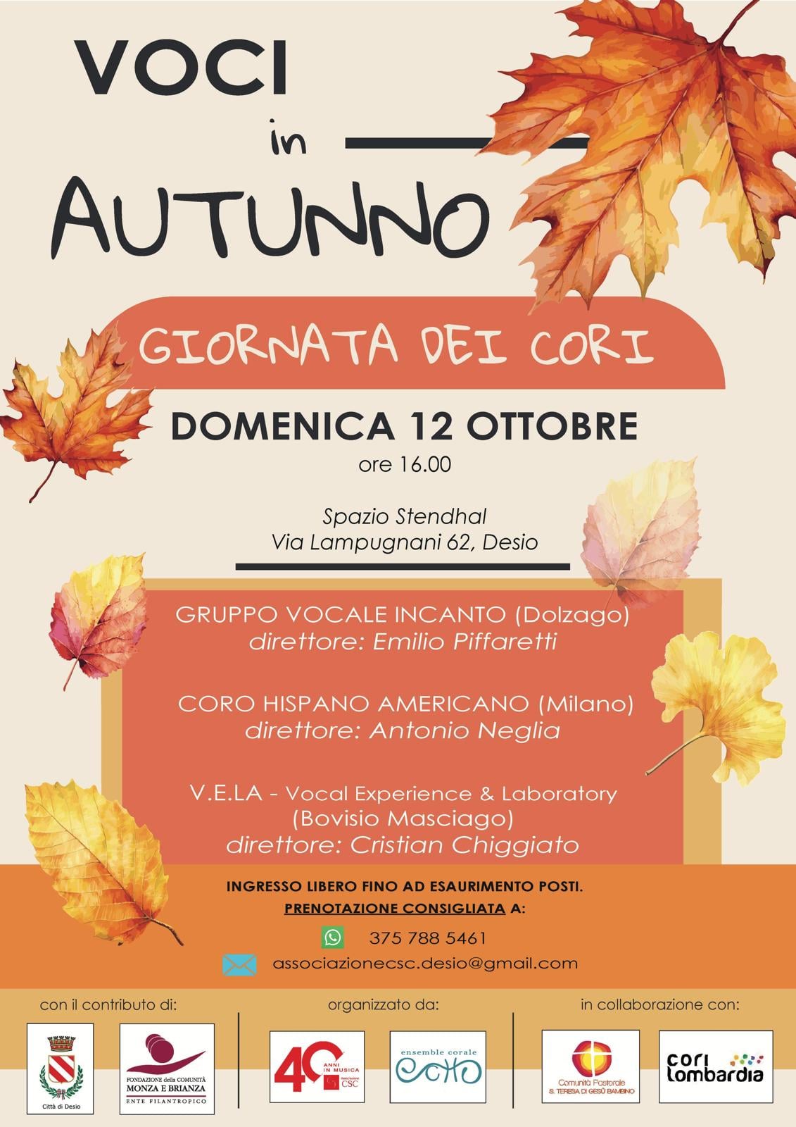 Voci in autunno - Giornata dei cori Domenica 12 Ottobre, h 16,00 - Spazio Stendhal, Via Lampugnani, 62 - Desio (Mb)